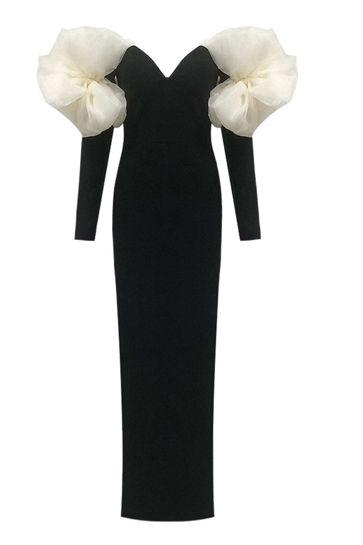 Embrace chic floral vibes with this black maxi dress adorned with a bowknot and floral-shaped embellishments. Perfect for any occasion. this dress will bring a touch of playfulness to your wardrobe.