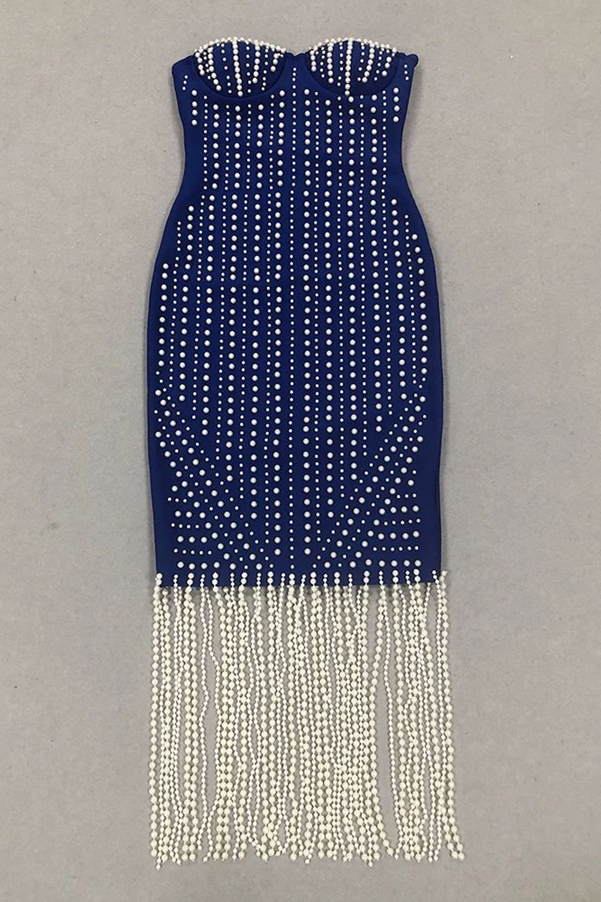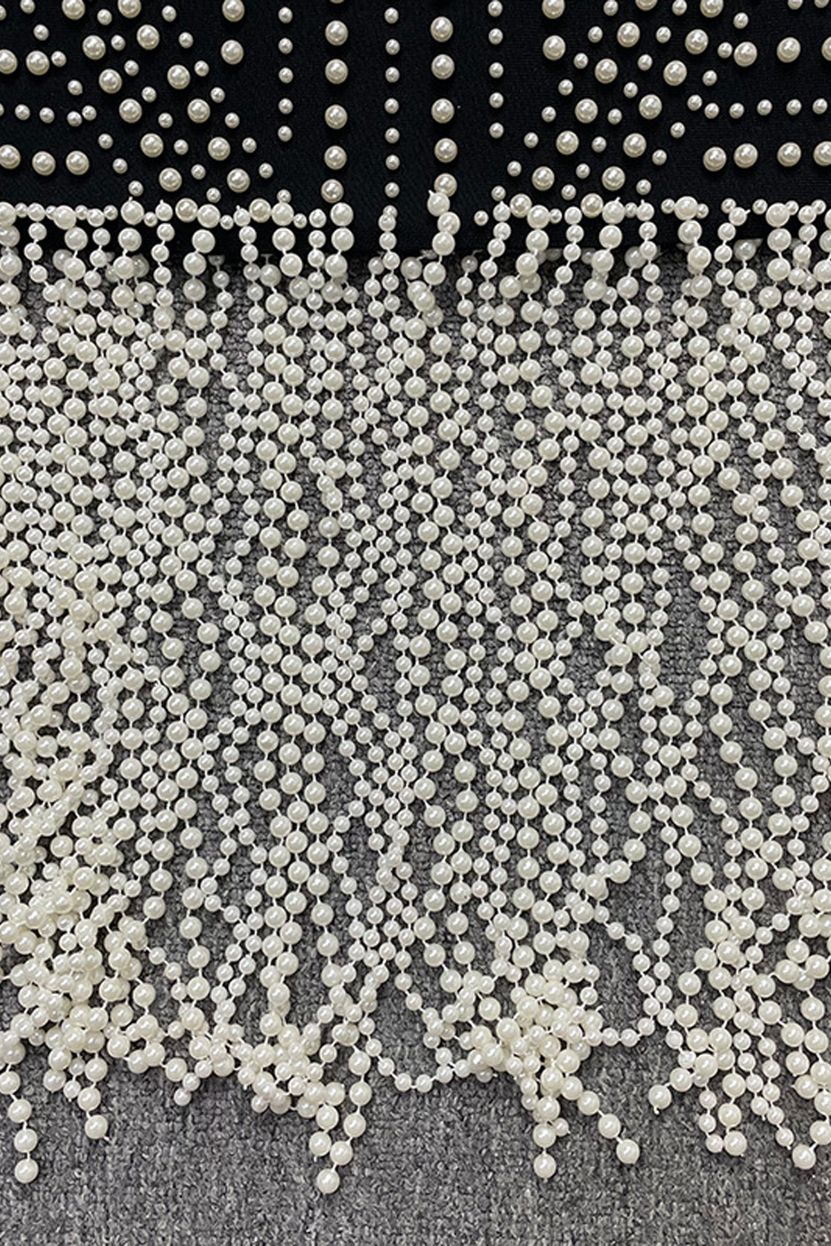 Drape yourself in luxury with opulent embellished dresses from our boutique. Adorned with a cascade of faux pearls that shimmer with every step, this lavish tube dress is pure elegance in motion. The flowing fringe sways gracefully as you move, creating a mesmerizing effect that's perfect for the dance floor. Crafted from a figure-hugging bandage fabric, it flawlessly sculpts your silhouette and features a hidden back zipper for a retro-inspired flapper mini. A must-have outfit for women who love making bold, unforgettable statements at every event.