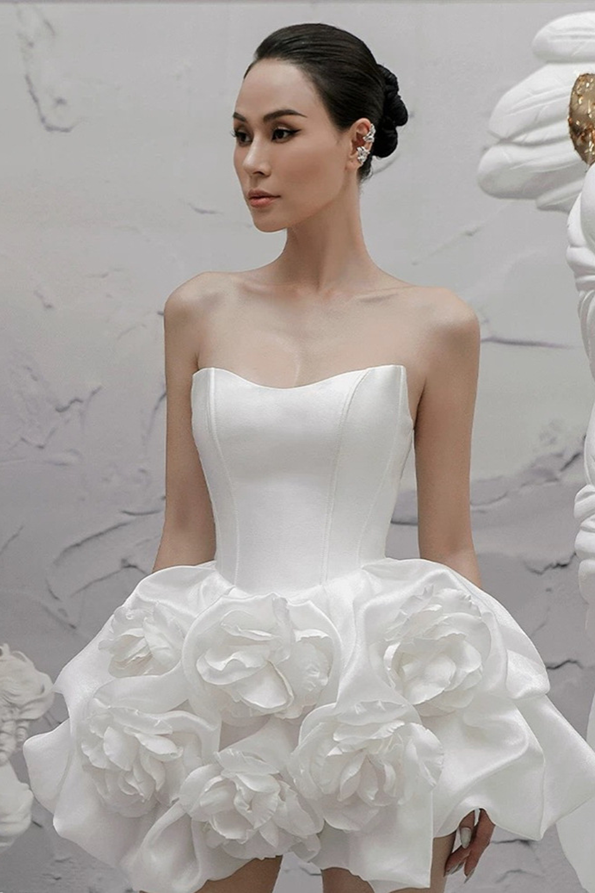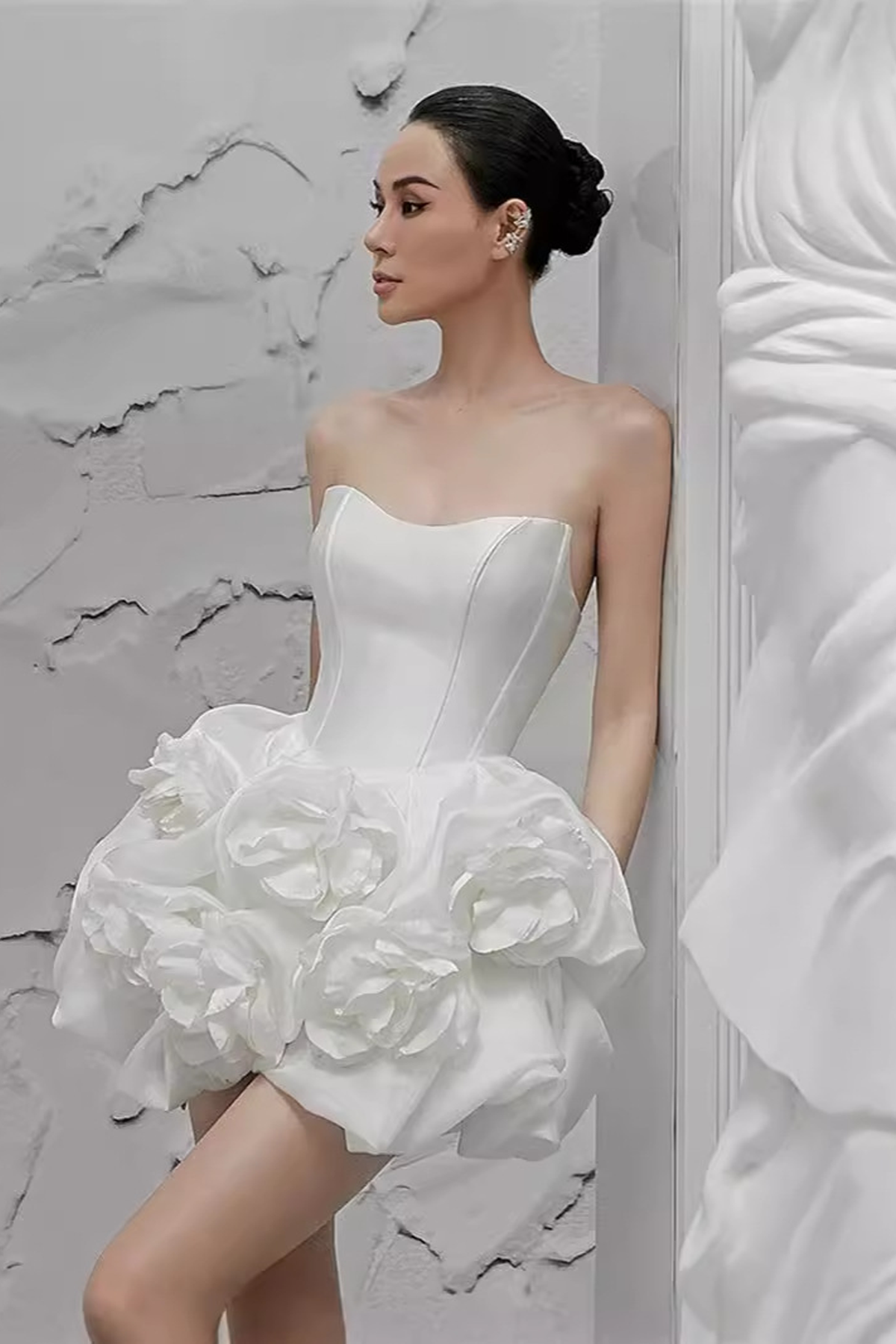 The delicate floral appliqué detailing adds a touch of elegance to this strapless dress. Designed for any special occasion, this mini dress will make you stand out and feel confident. A must-have for any fashion-forward individual.
