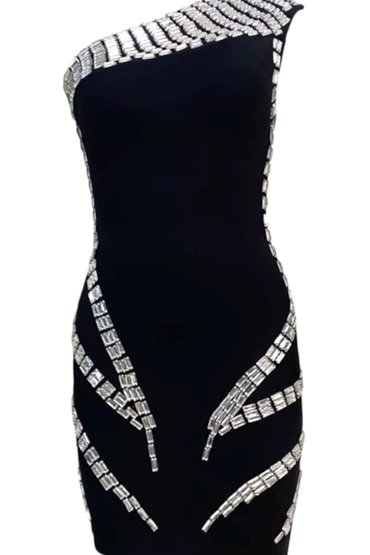 One Shoulder Crystal Dress Black