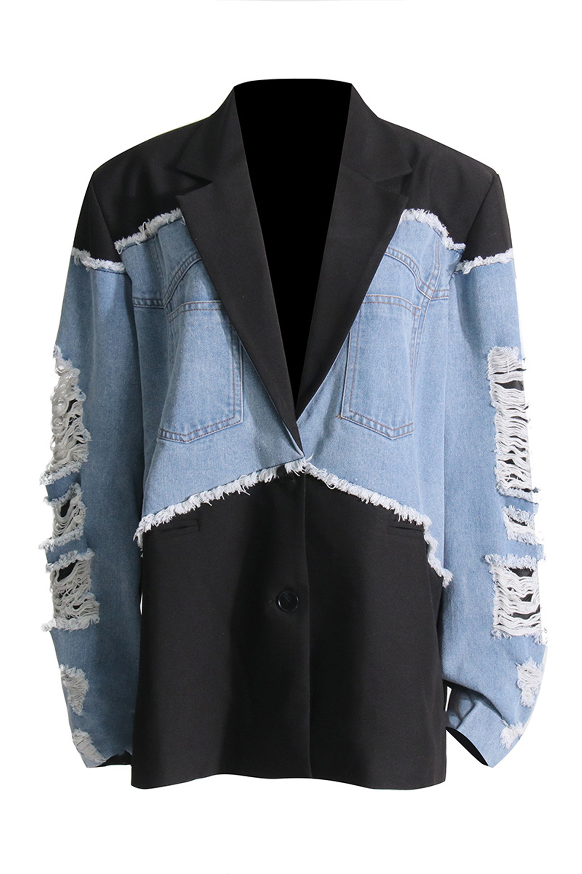 Oversized Denim Black Distressed Blazer