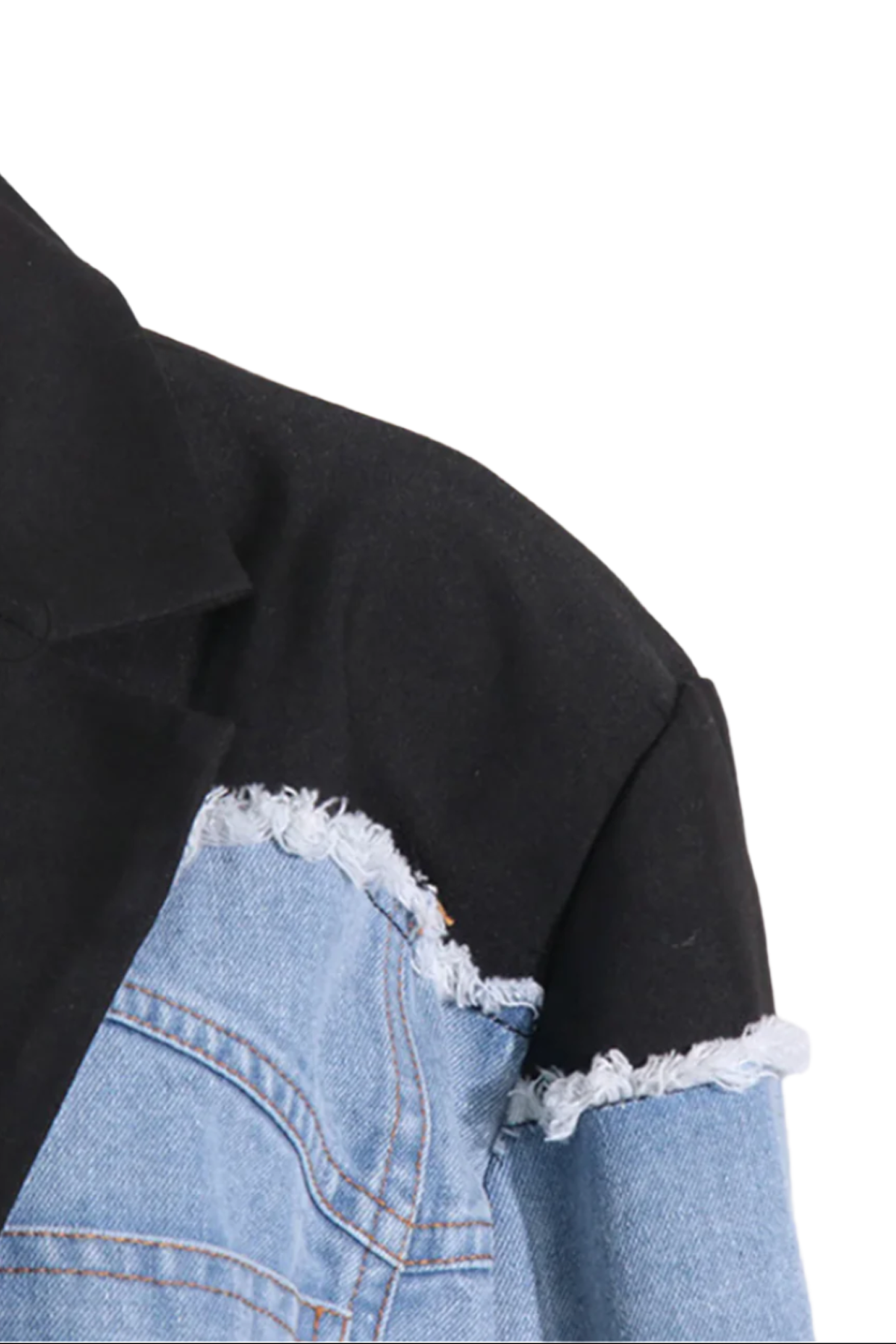 It is a style masterpiece that blends audacity and refinement, creating a look that will not go unnoticed. With its irresistible mix of clear denim And classic black fabric, this oversized jacket is a contemporary fashion, where tradition meets innovation. The asymmetrical cut and the crooked edge give a touch of determination, while the large sleeves And detailed embroidery offer a feeling of luxury and uniqueness. Every detail is designed to enhance your figure and bring your look to a higher level. Perfect for those who want to be the center of attention, this jacket is the ideal ally to transform every outfit, from casual to sophisticated, with one, extraordinary head. It is not just a purchase, it is a declaration of style.