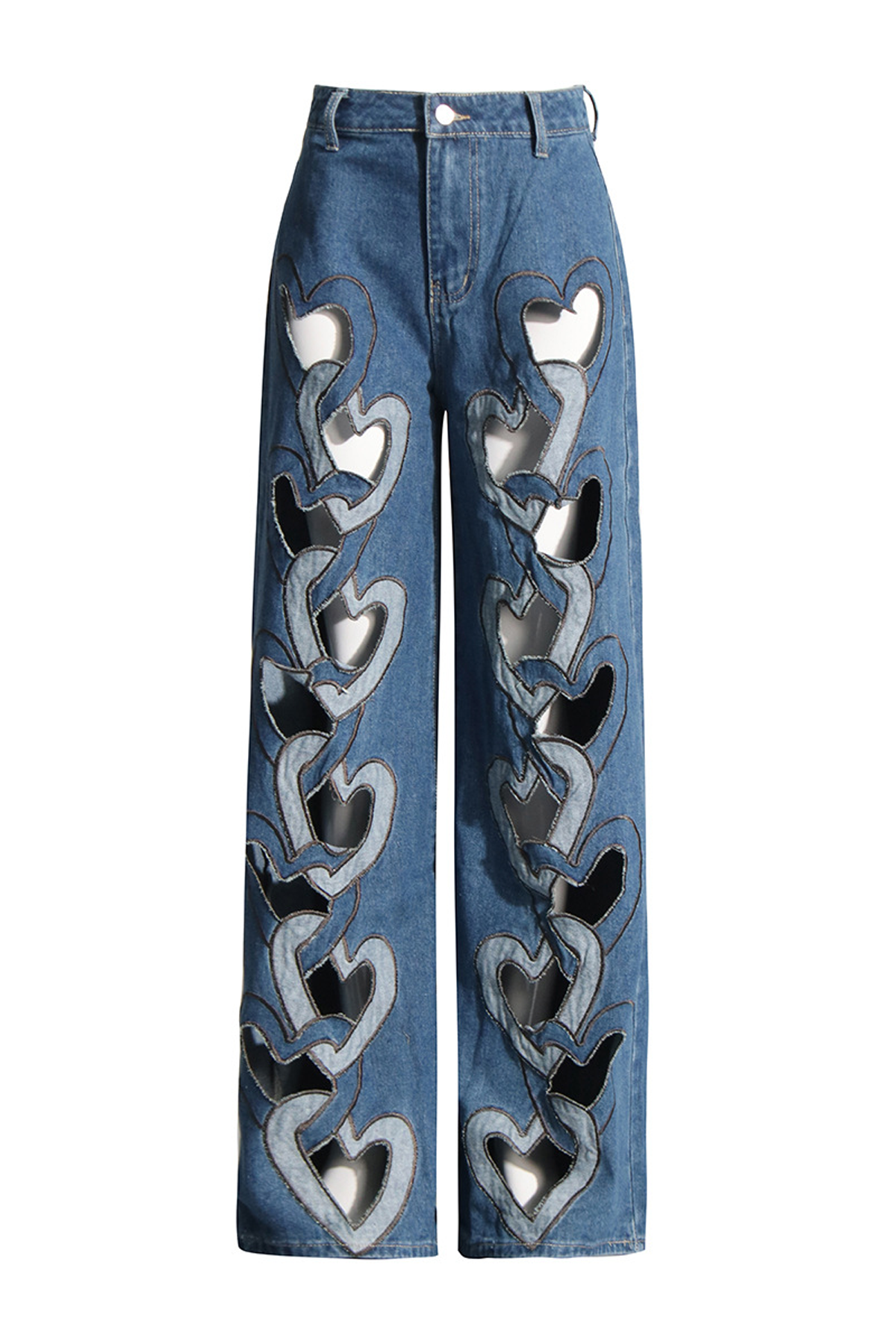 Patchwork Heart Denim Jeans: A vibrant twist on classic denim! Show off your flirty side with this bold heart patchwork design. Perfect for casual outings or a night out, these jeans are as comfortable as they are stylish.