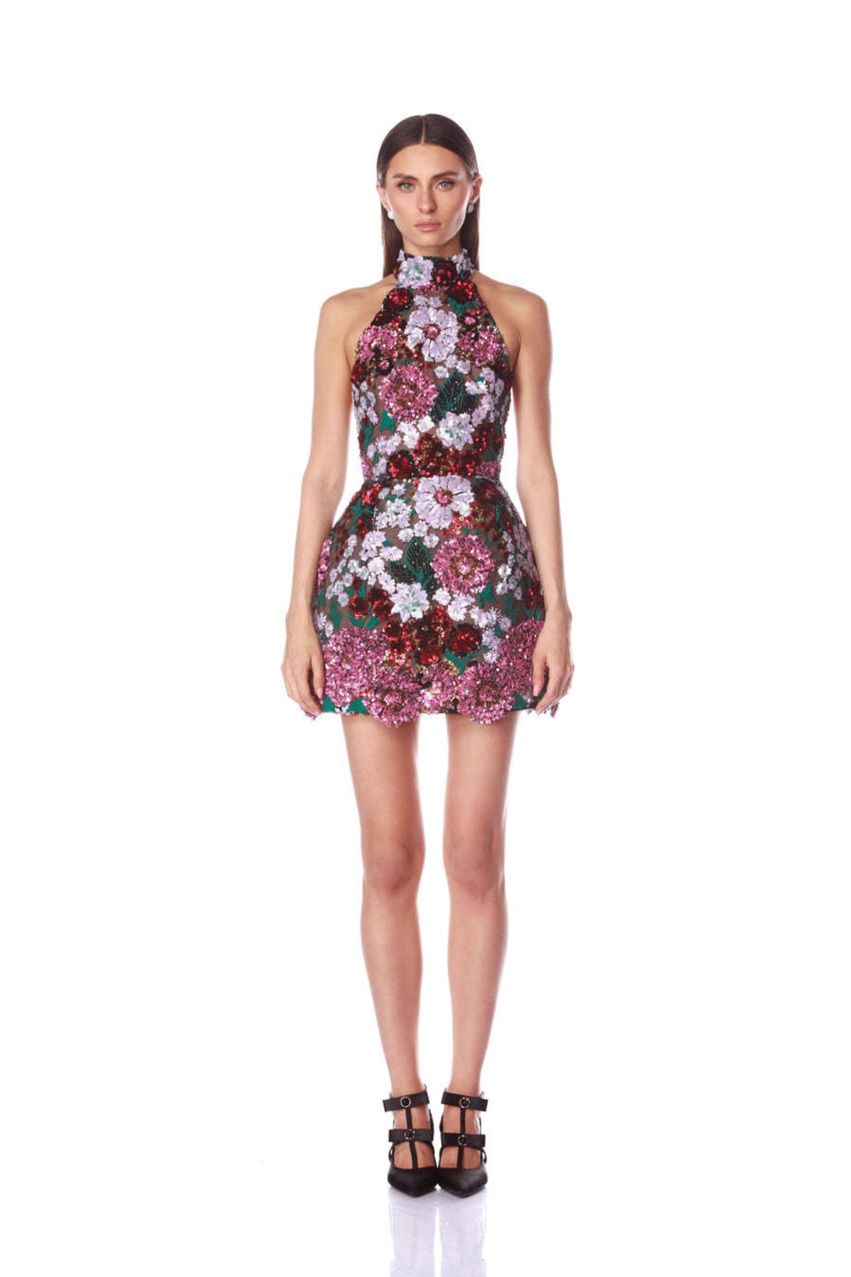 Step into elegance with our Pink Multi Mini Dress, a timeless ensemble perfect for any special occasion.