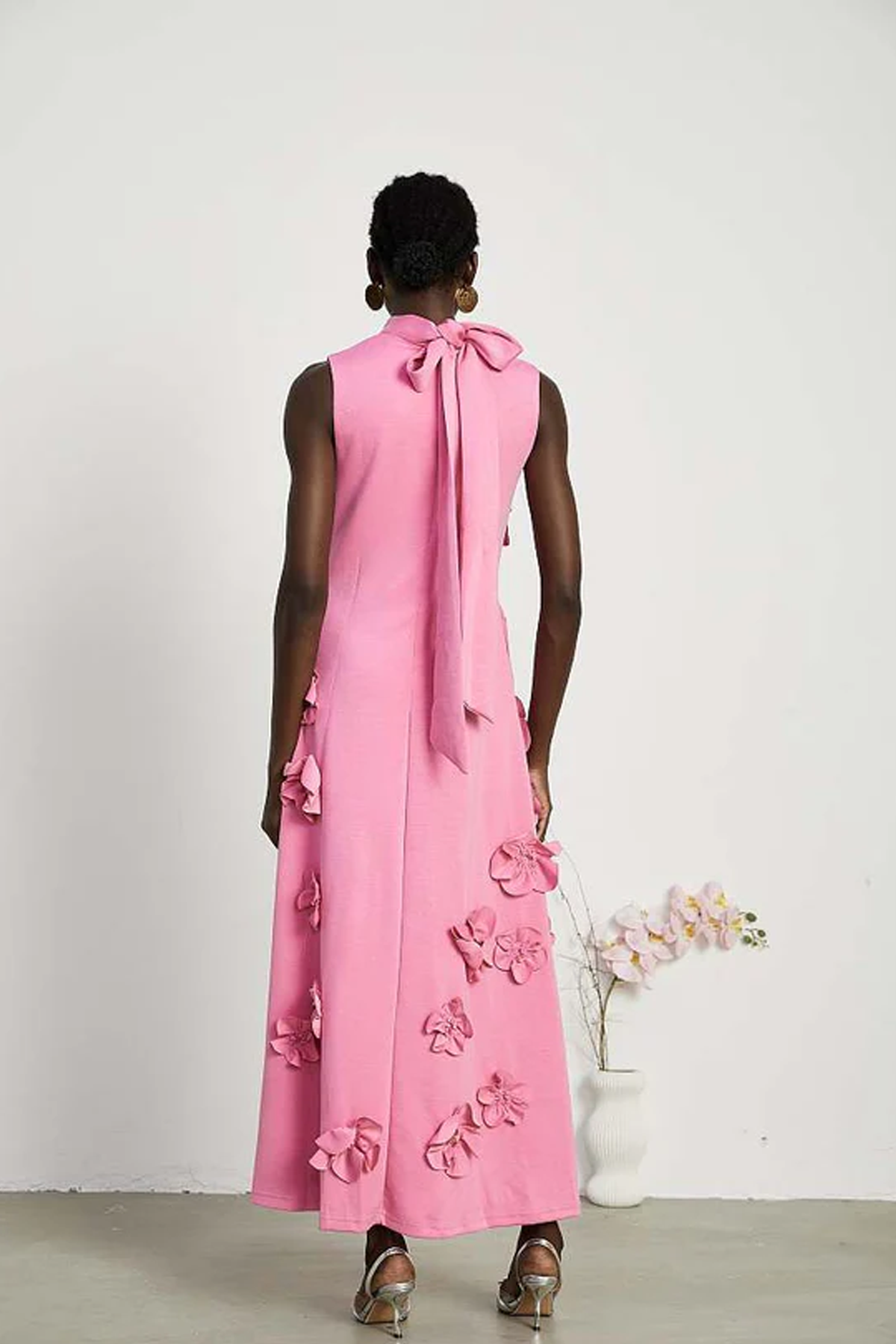 The Pretty Flower Bouquet Long Dress is a vision of elegance in pink! This sleeveless maxi dress features a charming bow-tie and faux-flower embellishments, adding a touch of whimsy and sophistication. Perfect for weddings, garden parties, or any special occasion where you want to stand out with grace and style.