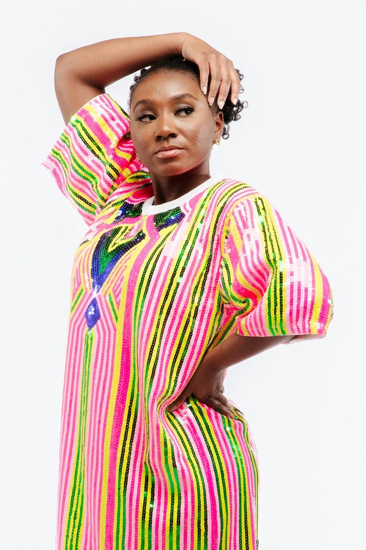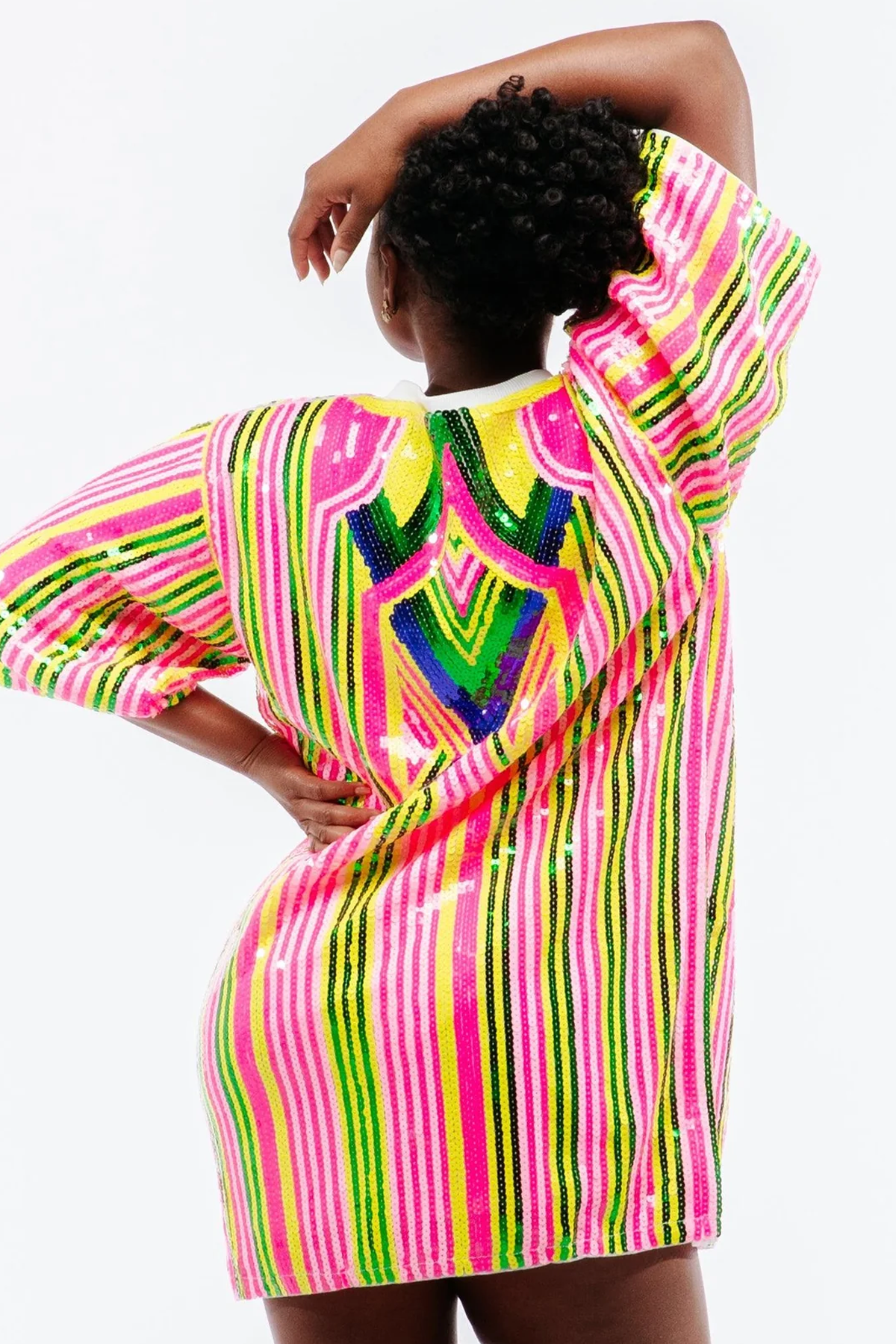 Elevate your fun day style with our Print Sequin Top, a stunning ensemble that fuses fashion! This fun dress perfectly captures your love for sequin fun dresses and will make you shine brighter than ever with beautiful sequins. Perfect for parties that go from day to night.