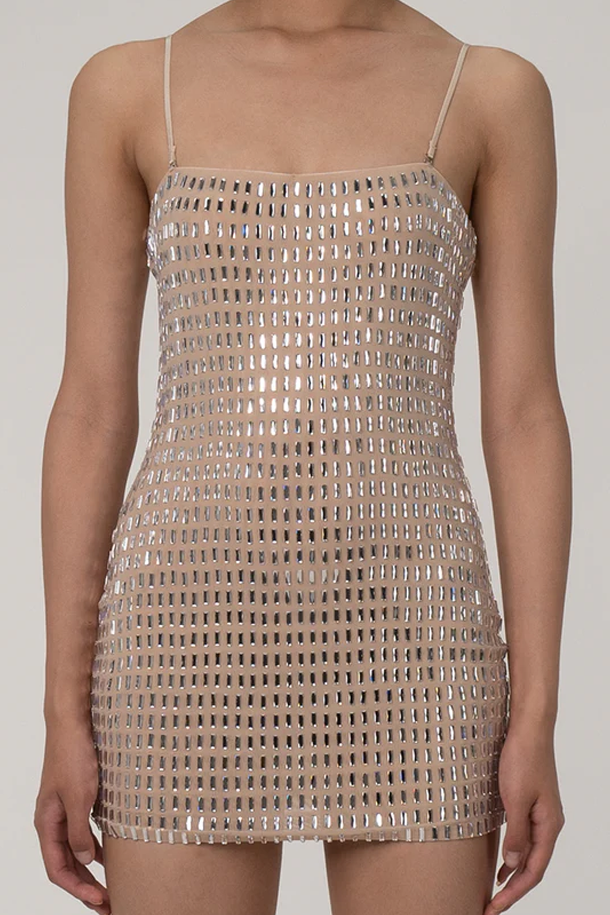 Pay attention this summer to our stunning rhinestone dresses, tailored for all women. This dazzling tube mini dress from our siela boutique features silver-tone diamante embellishments that shimmer on its opaque mesh silhouette. This sexy sheath minidress is designed as a bare-shoulder bandeau with a convenient back zip closure, ensuring effortless wear. In an apricot hue that complements every skin tone, its stretchy mesh fabric accentuates curves beautifully. Perfect for making a statement at any event, this versatile embellished prom outfit combines glamour with ease of wear, ensuring you shine all night long.