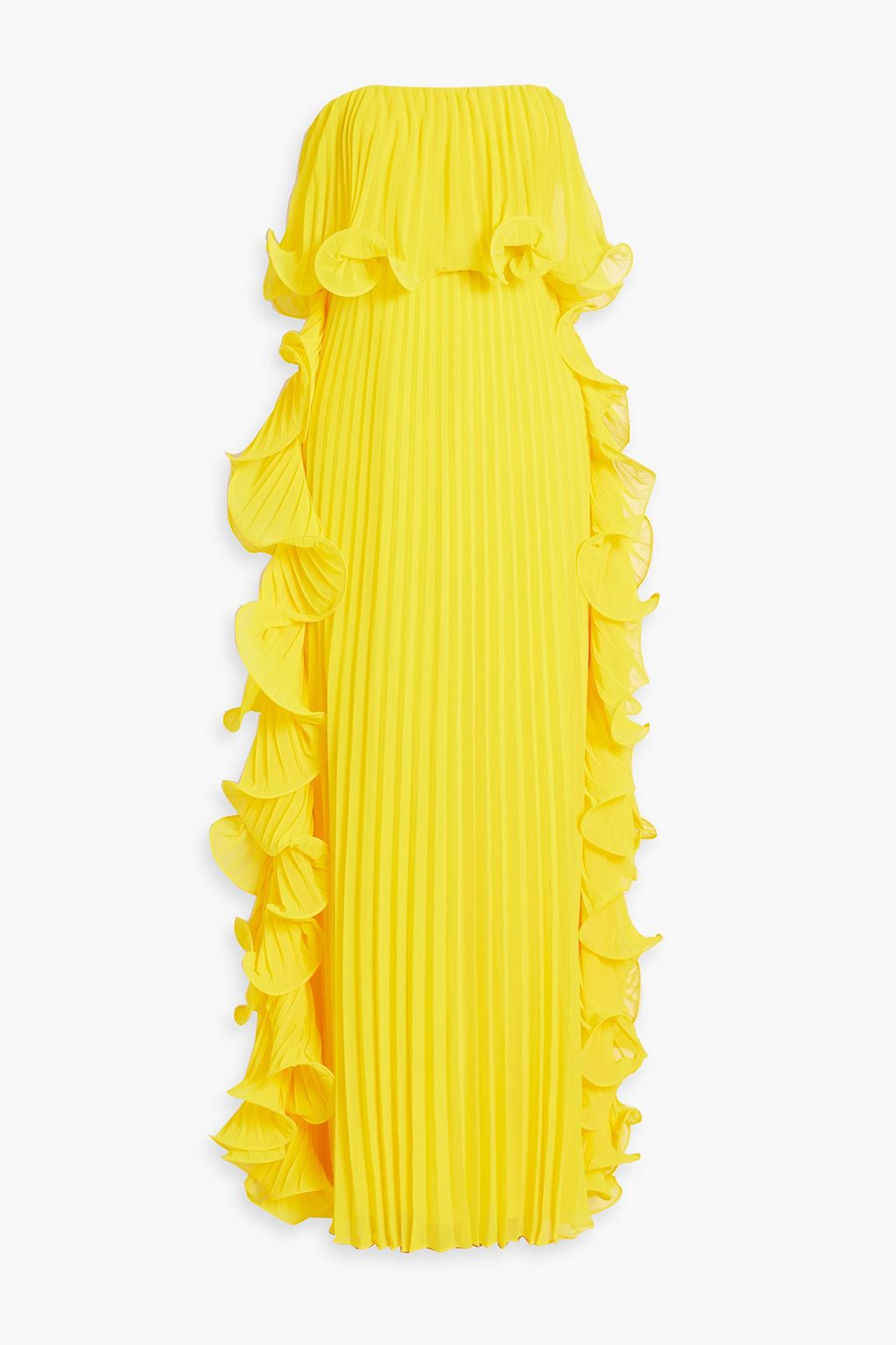 Designed To Frame Your Décolletage, Wear Yours With Swept-up Hair And Statement Earrings gown chiffon pleated ruffled fully Lined concealed Hook And Zip Fastening At Back non-stretchy Fabric mid-weight Fabric dry Clean imported. 100% Polyester.