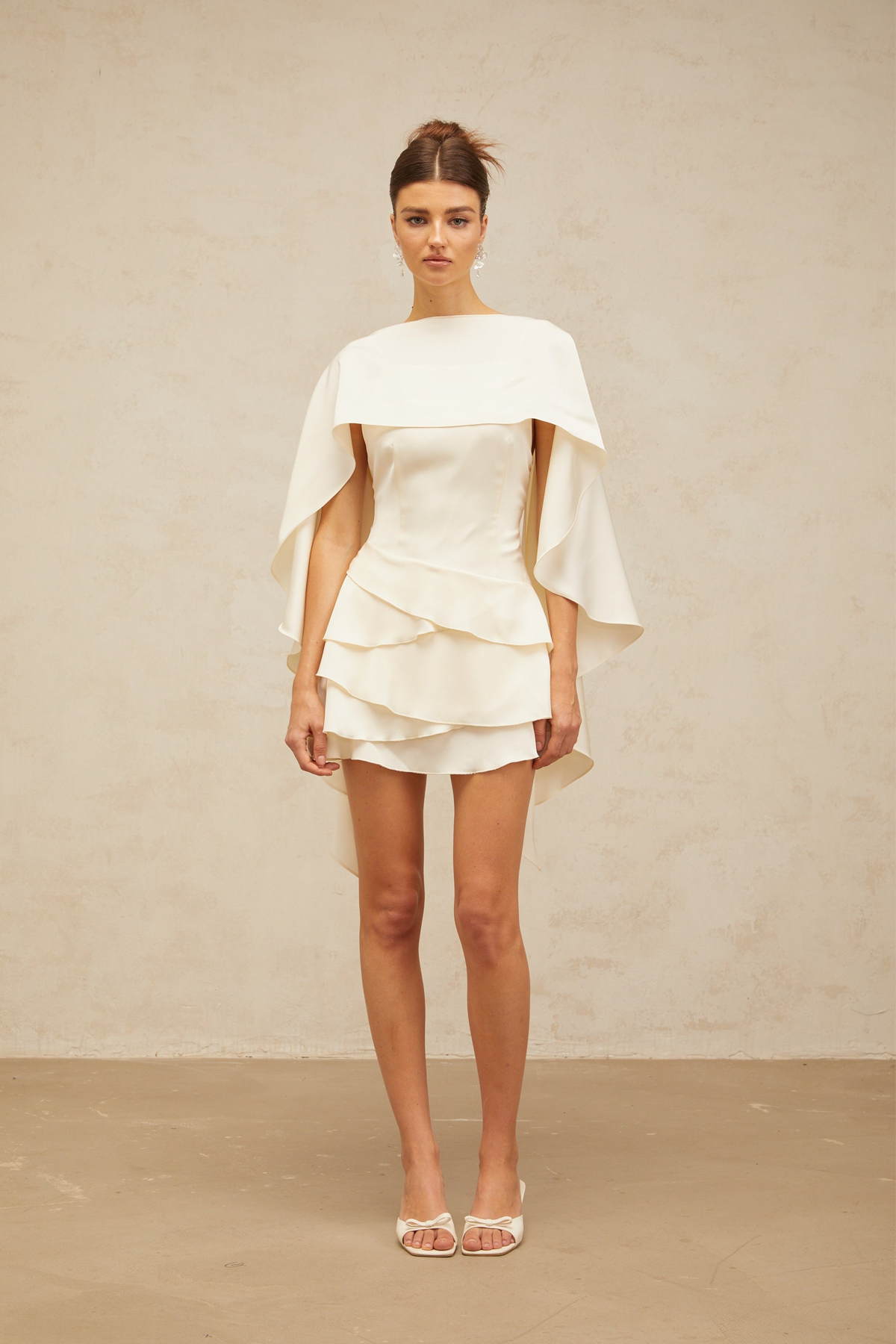 White Satin Ruffled Mini Dress